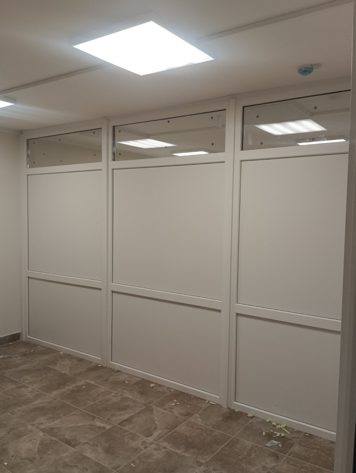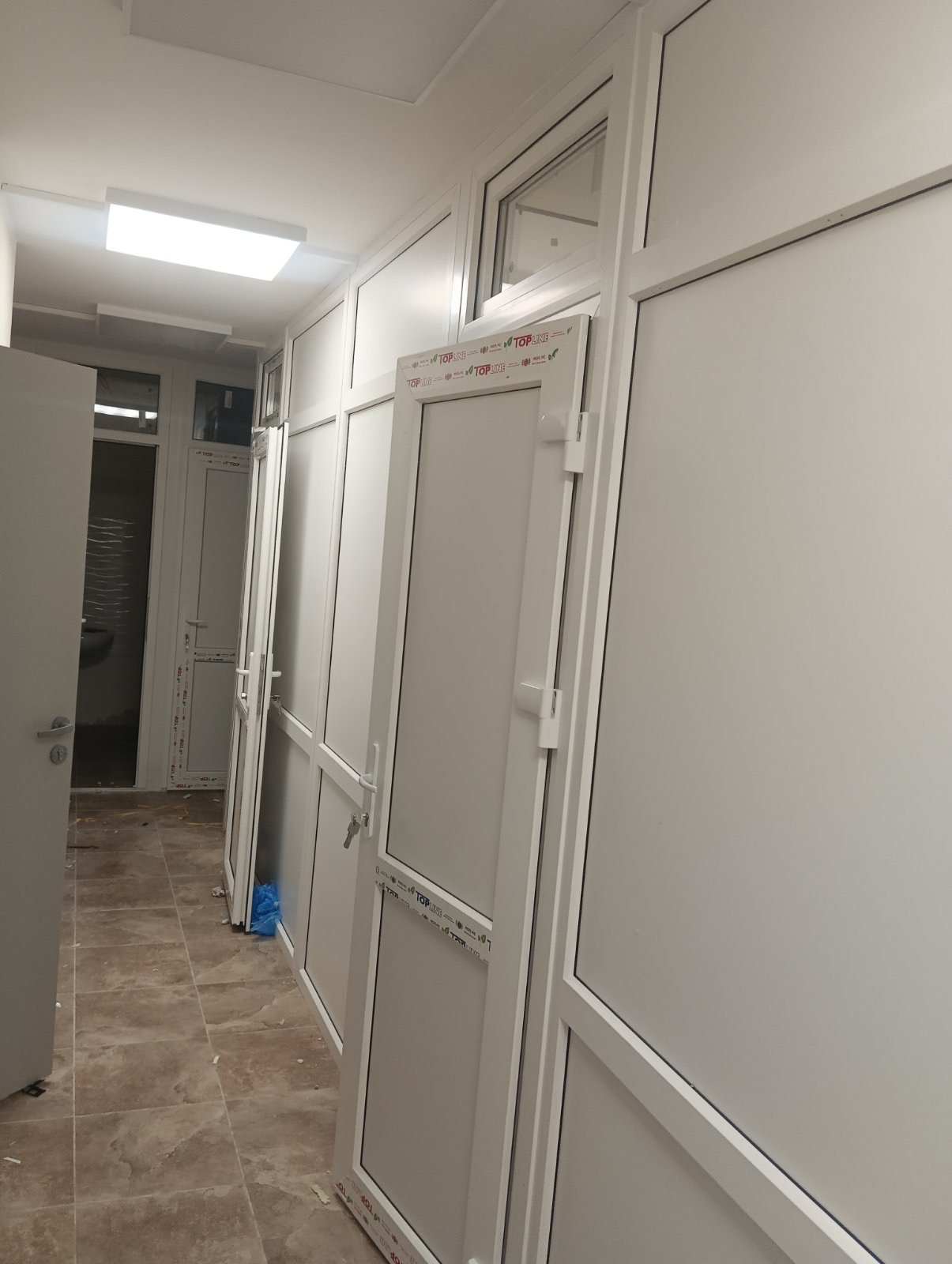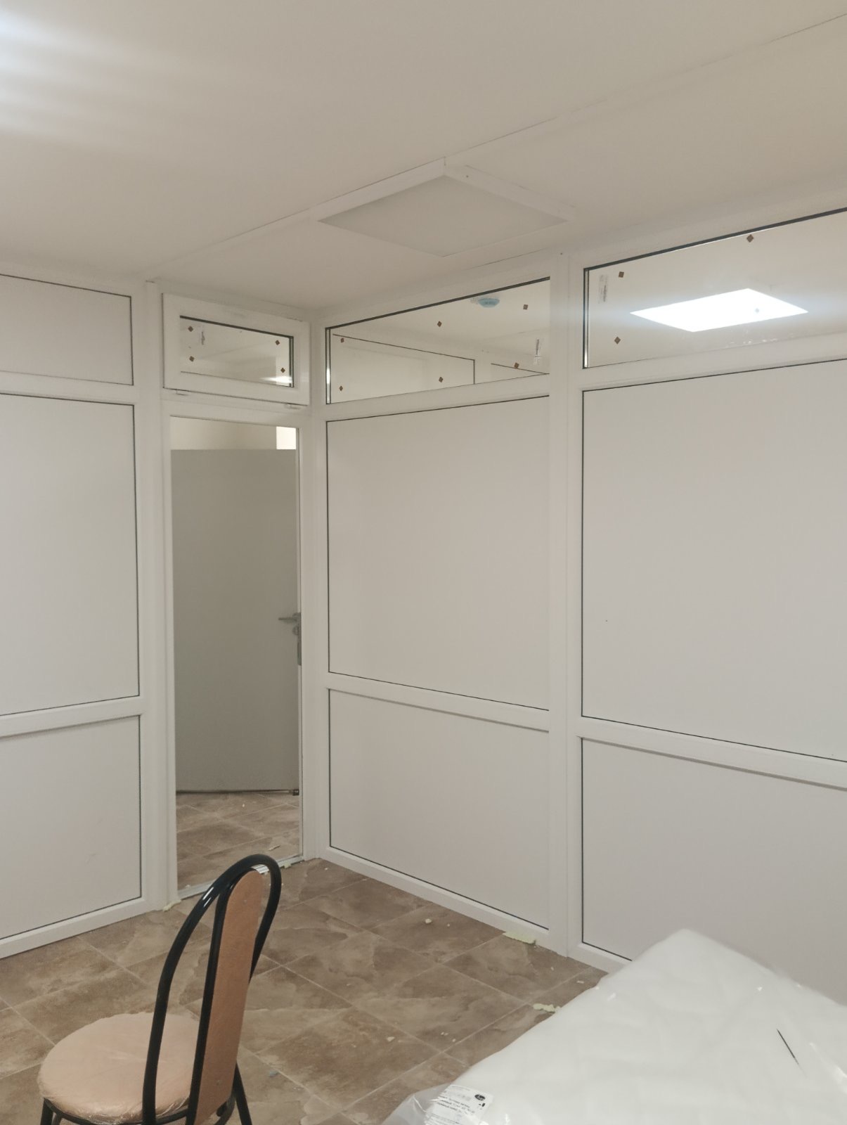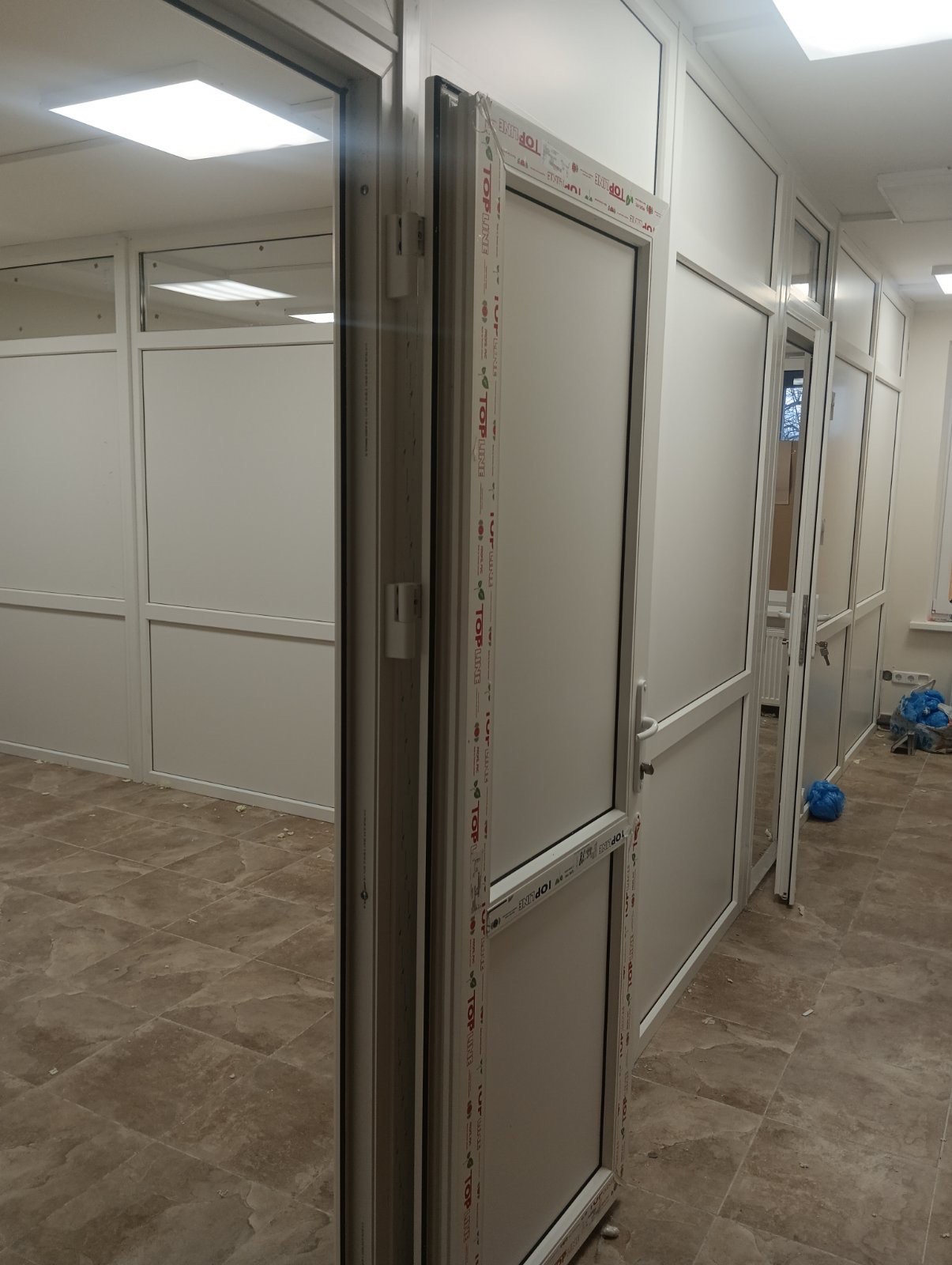 Для этого объекта наша компания выполнила изготовление и монтаж внутренних офисных перегородок с дверными блоками. Основная задача заключалась в том, чтобы быстро и аккуратно организовать отдельные рабочие и технические помещения внутри общего пространства, сохранив светлый, чистый и практичный интерьер.