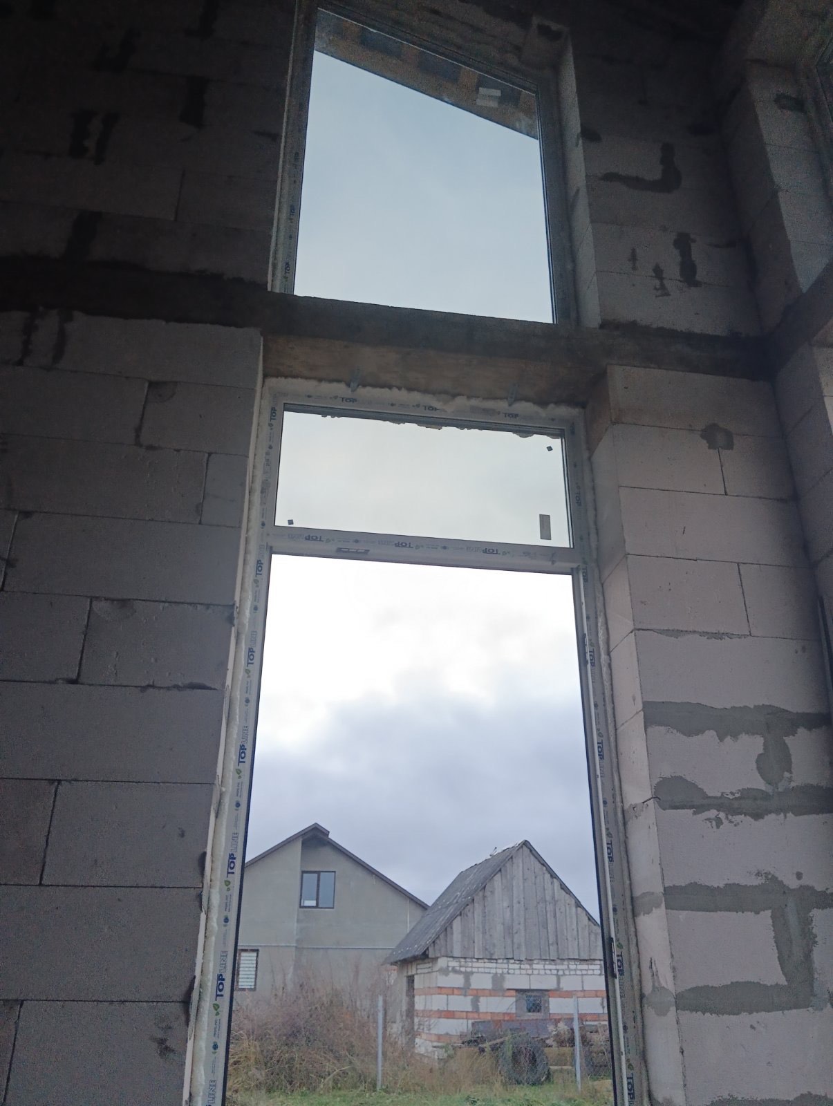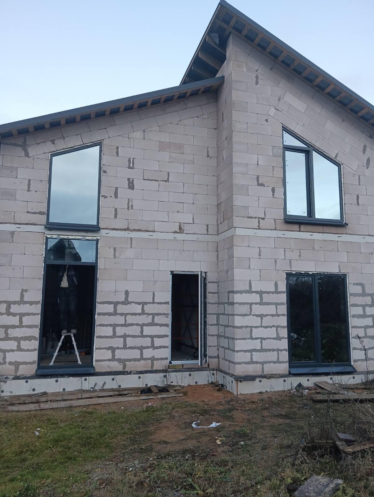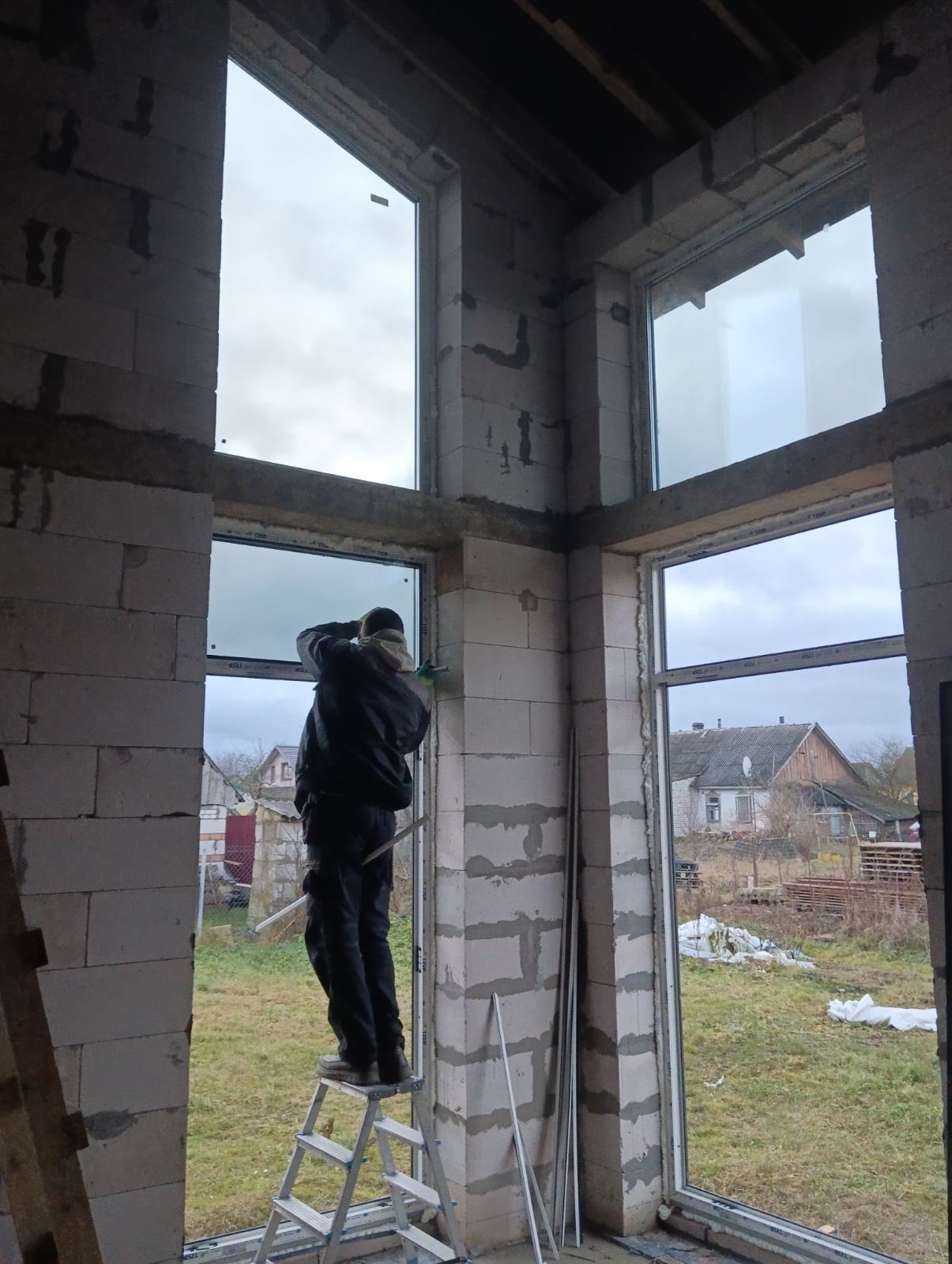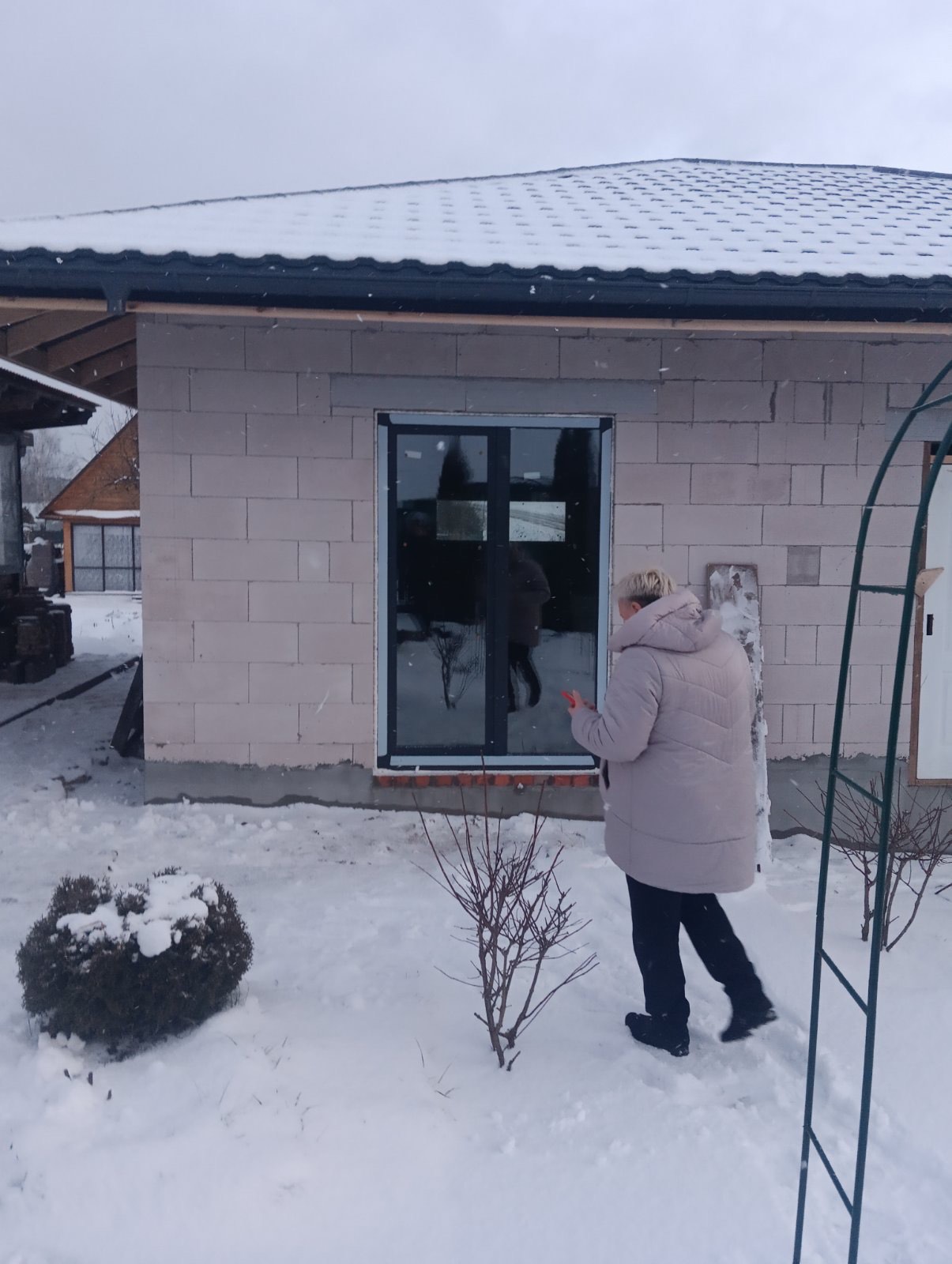 Объект — одэтажный частный дом на этапе фасадных работ (ветрогидрозащита и обрешётка под отделку). Задача — установить тёплые окна и выход на террасу с корректным «слоёным» узлом примыкания под будущий фасад.