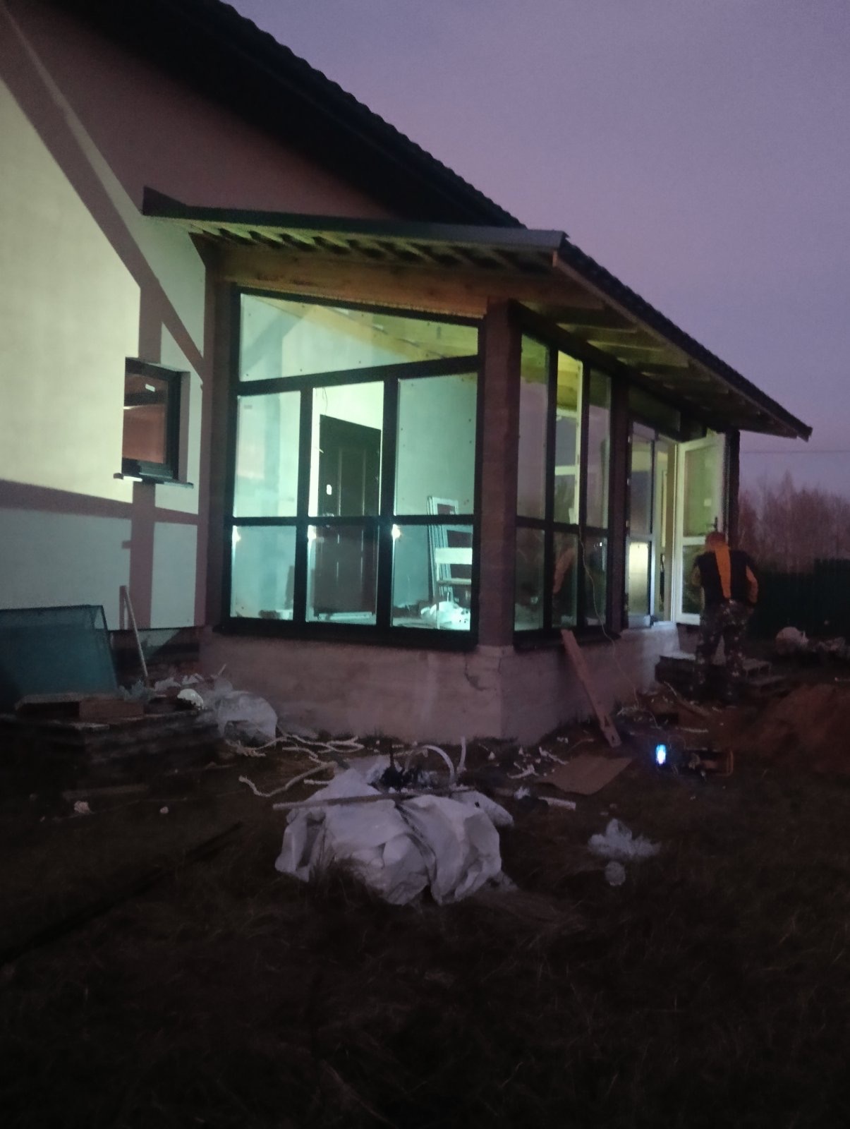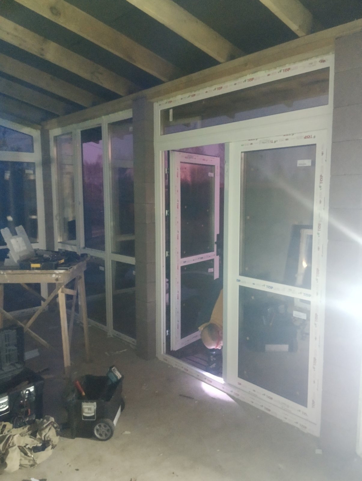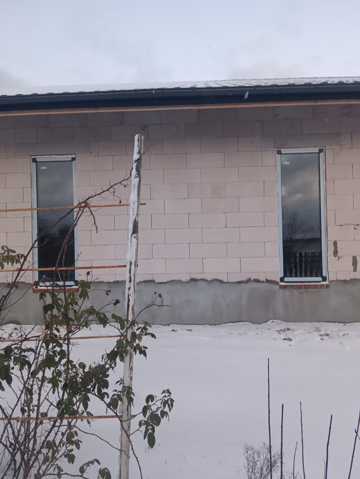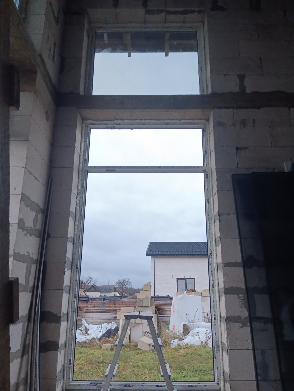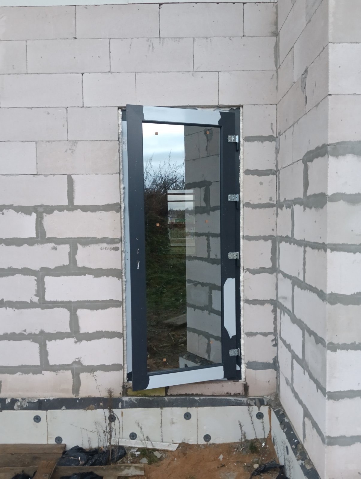 Объект — одэтажный частный дом на этапе фасадных работ (ветрогидрозащита и обрешётка под отделку). Задача — установить тёплые окна и выход на террасу с корректным «слоёным» узлом примыкания под будущий фасад.