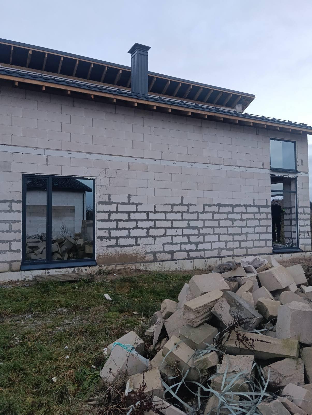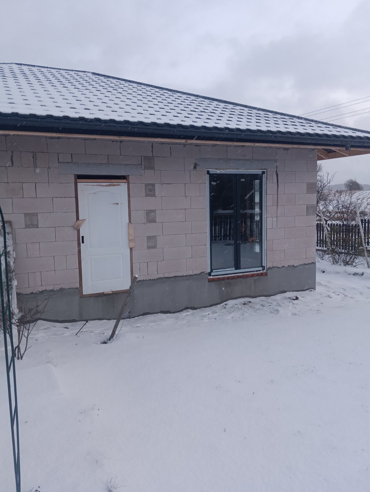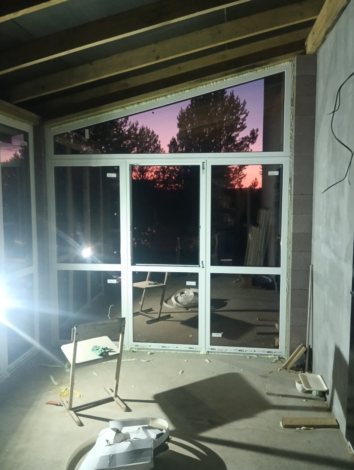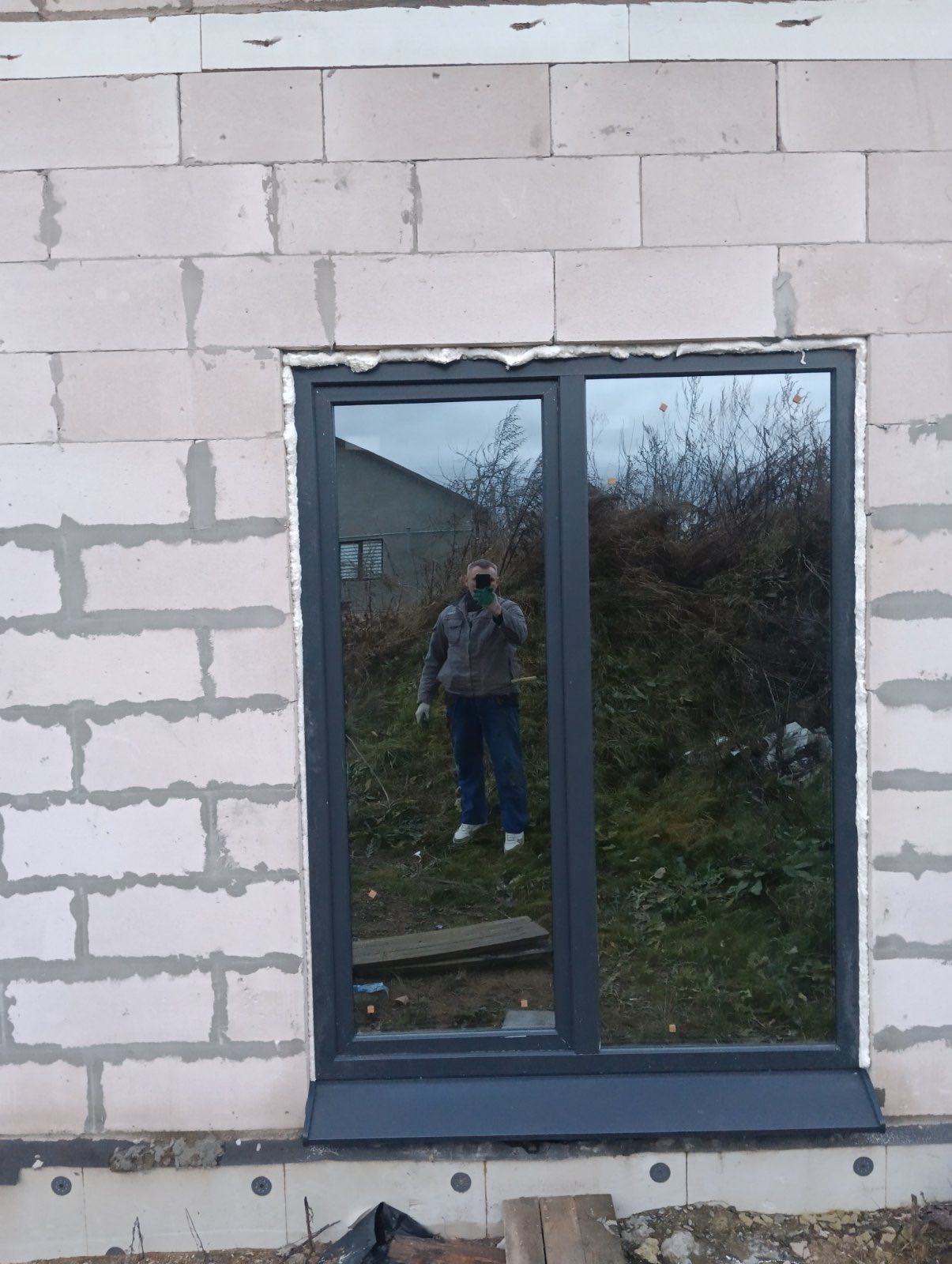 Объект — одэтажный частный дом на этапе фасадных работ (ветрогидрозащита и обрешётка под отделку). Задача — установить тёплые окна и выход на террасу с корректным «слоёным» узлом примыкания под будущий фасад.